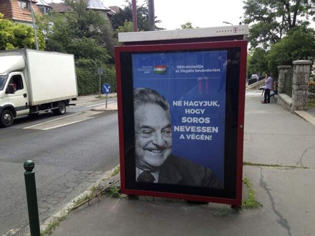 На улицах венгерских городов в последнее время появились бигборды, на которых изображен смеющийся Джордж Сорос, с подписью: