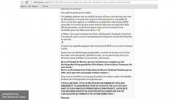 А вот еще один французский сайт со статьей про тот же опрос, якобы показавший, что свыше четырех пятых всех французов не одобряют Россию. Тут в комментариях снова какие-то не те французы выступают. Русофобы помрут с тоски от такого единодушия: