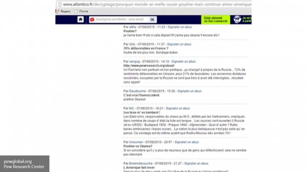 Во французском Atlantico результаты исследования Pew Research Center поданы более креативно. В статье мысли, выраженные вашингтонским центром, усиливаются эмоционально окрашенной, неприязненной формой. Отношение к путинскому режиму и ведомой им России в этом издании неодобрительно-саркастическое: