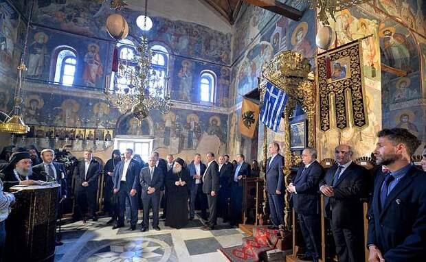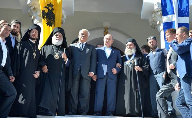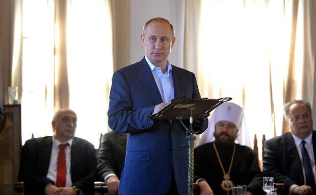 http://www.kremlin.ru/events/p... В Карее, административном центре Афона, вместе с протоэпистатом Святой Горы отцом Павлом и братией глава Российского государства присутствовал на молебне в храме Успения Пресвятой Богородицы, по окончании которого обратился к присутствующим с приветственной речью.