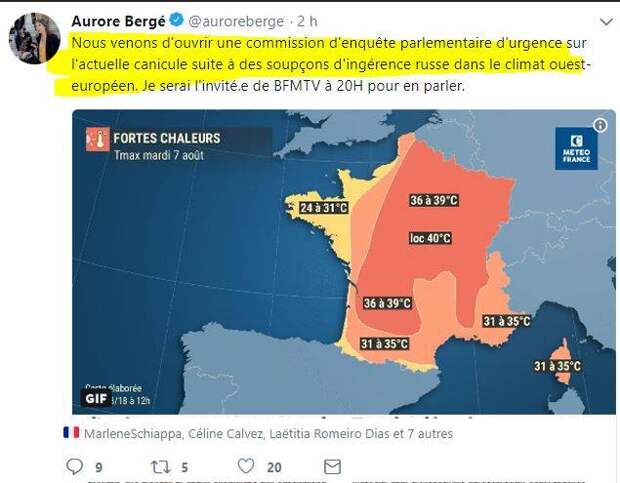 Состоится срочное создание комиссии по расследованию на уровне парламента Франции для разбирательства вины России в чрезвычайном положении с погодными высокими температурами на территории Западной Европы.